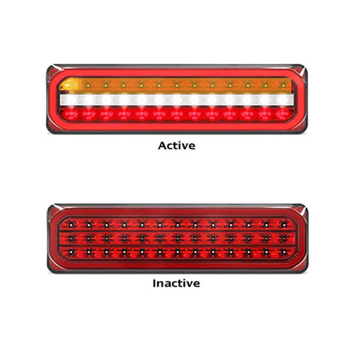 LED TAIL LAMPS WITH DIFFUSED LENS AND SEQUENTIAL INDICATOR 12/24V. 387MM X 105MM X 31MM DEEP. TWIN PACK. Part number: 3854ARRM-2