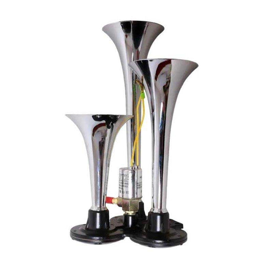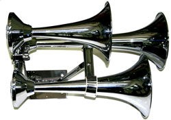 CHROME TRIPLE AIR HORN W SOLENOID 12/24V