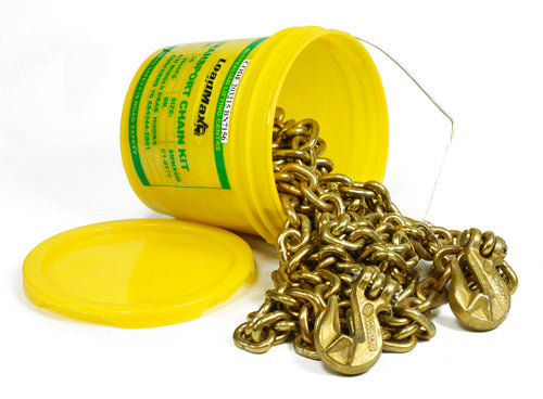 SKU: LIF203225COMPLETE WITH TWO 10MM CLEVIS GRAB HOOK. GOLD CHAIN PACKED IN PLASTIC BUCKET. LASHING CAPACITY 6 TONNE. Part number: 203225