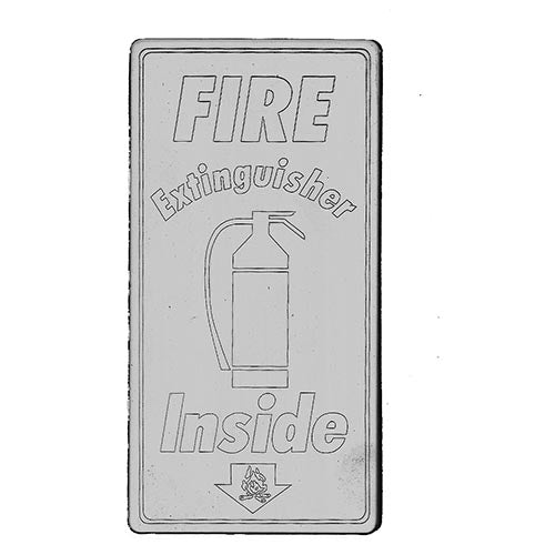 SKU: GGA68627FIRE EXTINGUISHER INSIDE. ETCHED ON STAINLESS STEEL. VERTICAL FORMAT. 128MM X 65MM. Part number: 68627
