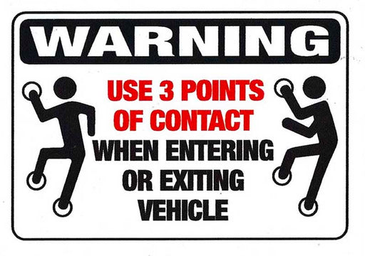 SKU: SAFS3PCWARNING USE 3 POINTS OF CONTACT WHEN ENTERING OR EXITING VEHICLE. RED/BLACK/WHITE DECAL. Part number: S3PC