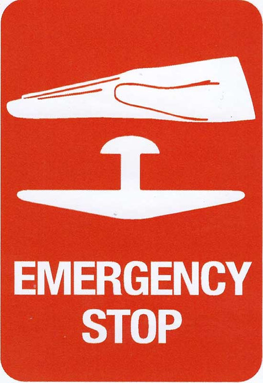 SKU: SAFSESEMERGENCY STOP 90MM X 125MM. RED AND WHITE DECAL. Part number: SES