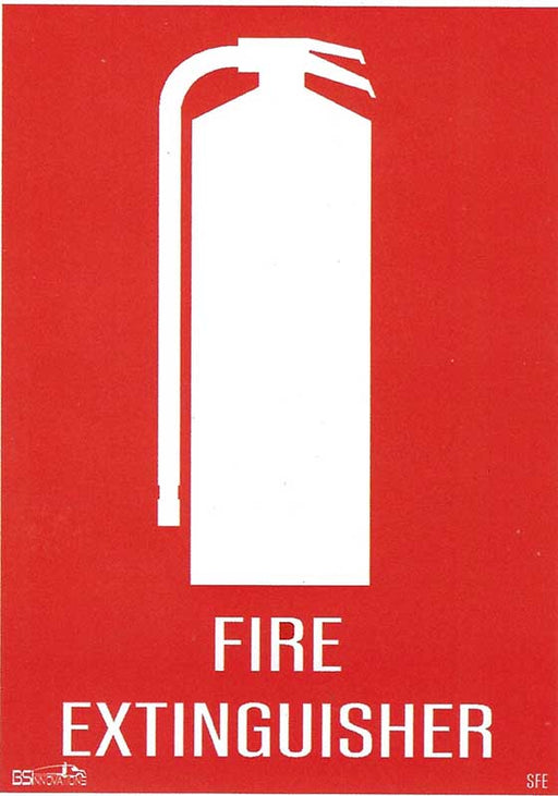 SKU: SAFSFEFIRE EXTINGUISHER WHITE/RED ADHESIVE. 125MM X 90MM. Part number: SFE