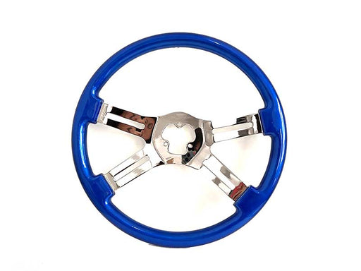 SKU: GGA54013DELUXE BLUE BLACK STEERING WHEEL COVER WITH CHROME TRIM. 460MM DIAMETER. Part number: 54013