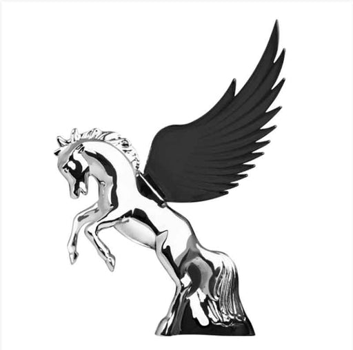 SKU: GGA48394CHROME FIGHTING STALLION WITH BLACK ILLUMININATED GLOW EFFECT WINGS. 165MM X 190MM. Part number: 48394