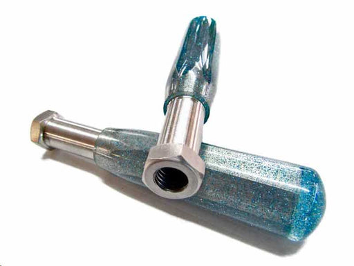 SKU: HYMGKBGEAR KNOB 130MM LONG. BLUE GLITTER. 12MM THREAD. FOR ALL YOU OLD DRIVERS OVER 50. Part number: GKB