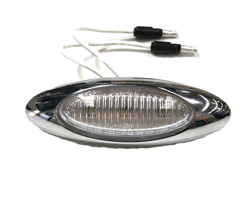 SKU: LUC22334CK-BLLED MARKER LAMP WITH CHROME BEZEL. WHITE. 105MM X 35MM X 19MM. 12 VOLT ONLY. Part number: 22334CK-BL