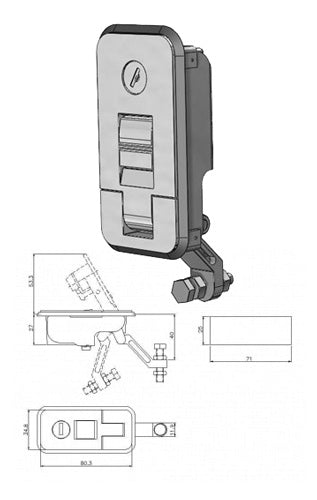 SKU: UNV10208FLUSH FITTING PUSH BUTTON OPERATION. FACE 35MM X 80MM. KEY LOCK. Part number: 10208