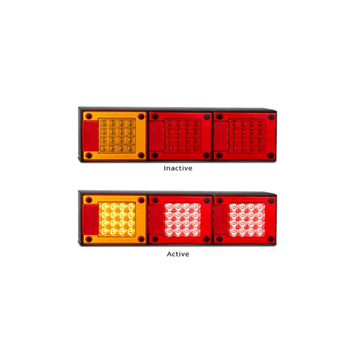 SKU: LEDJ3BARRMREAR INDICATOR AND TWO STOP/TAIL LAMPS. THREE CELL SURFACE MOUNT. 595MM X 130MM X 46MM. Part number: J3BARRM
