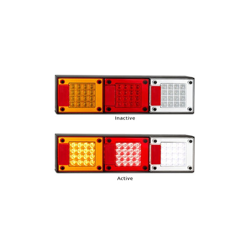 SKU: LED3854ARWM-2LED TAIL LAMPS WITH STANDARD LENS. WITH SEQUENTIAL INDICATOR 12/24V. 387MM X 105MM X 31MM DEEP. Part number: 3854ARWM-2