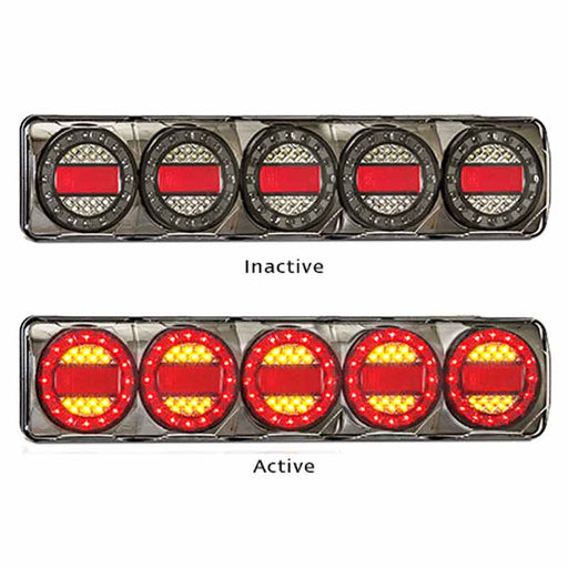SKU: LEDMAXILAMPC5XRWSTOP/TAIL/INDICATOR/REVERSE. BLACK CHROME FINISH. 12-24 VOLT. 600MM X 135MM X 40MM DEEP. Part number: MAXILAMPC5XRW
