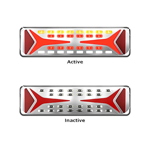 SKU: LED3853ARWM-2LED TAIL LAMPS WITH RED/CHROME LENS. WITH SEQUENTIAL INDICATOR 12/24V. TWIN PACK. 387MM X 105MM X 31MM. Part number: 3853ARWM-2