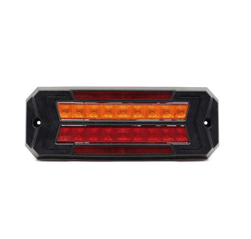 SKU: NAR94840REAR DIRECTIONAL INDICATOR AND STOP/TAIL LAMP WITH IN BUILT REFLECTOR. IN TWIN BLACK HOUSING. 131MM X 400MM. Part number: 94840