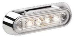 SURFACE MOUNTED CHROME BASE LED LAMP. WHITE INACTIVE. WHITE ACTIVE. 110MM X 36MM X 16MM. Part number: 90812CBL