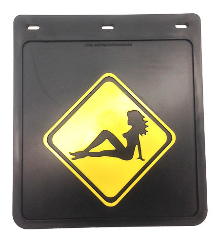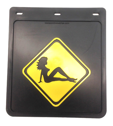 SKU: MUD1009BGRBLACK MUDFLAP WITH YELLOW DIAMOND. GIRL FACING TOWARDS THE LEFT. 10 INCHES LONG X 9 INCHES WIDE. Part number: 1009BGR