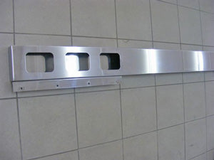 SKU: GGA81139STAINLESS STEEL REAR LIGHT BAR WITH FOUR ROUND CUT OUTS. BOLT ON WITH MUDFLAP HANGER. 760MM LONG X 150MM WIDE. Part number: 81139