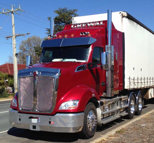 SKU: HANACS20916STAINLESS STEEL SUNVISOR 13 INCH BOLTLESS TO SUIT KW T400/C509/T600/T650/ T658/T659/T900/T950. Part number: CS20916