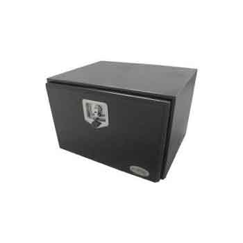 SKU: BOXTB014STEEL BLACK POWDERCOATED TOOL BOX WITH ONE STAINLESS STEEL LATCH. L500MM X H350 X D400MM. Part number: TB014