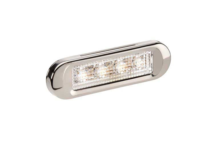FLUSH MOUNT WITH STAINLESS STEEL BEZEL. CLEAR INACTIVE. WHITE ACTIVE. 92MM X 26MM X 9MM CUT OUT REQUIRED. Part number: 90814