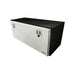 STEEL BLACK POWDERCOATED TOOL BOX WITH STAINLESS FRONT LID AND TWO LATCHES. L900MM X H350MM X D500MM. Part number: TB022